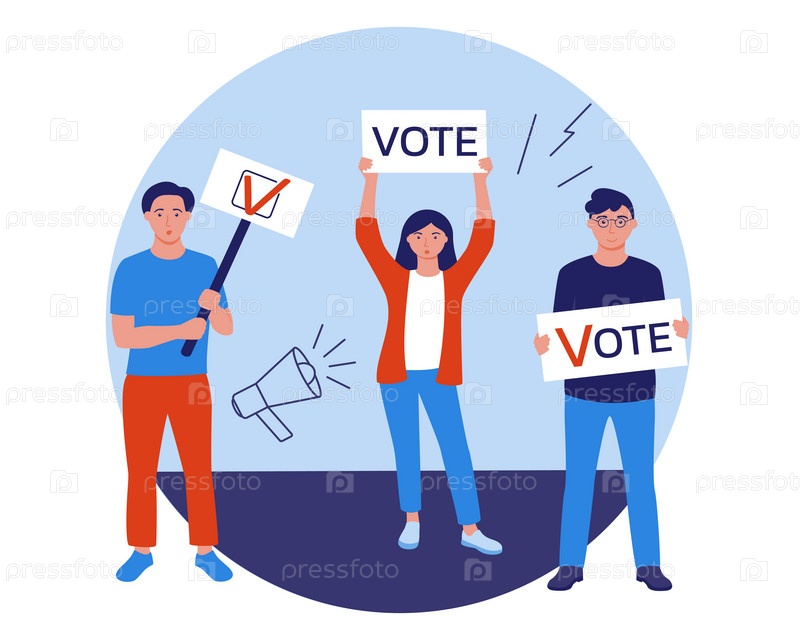 Люди держат плакаты, транспаранты и плакаты с надписью «Голосуй». Призыв голосовать
