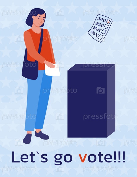 Девочка бросает бюллетень в урну для голосования. Призыв голосовать. Пошли голосовать