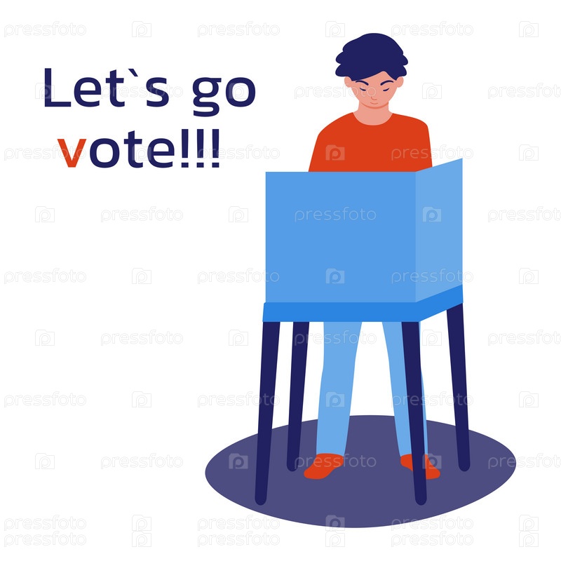 Мужчина в кабинке для голосования делает свой выбор. Призыв голосовать. Пойдем голосовать