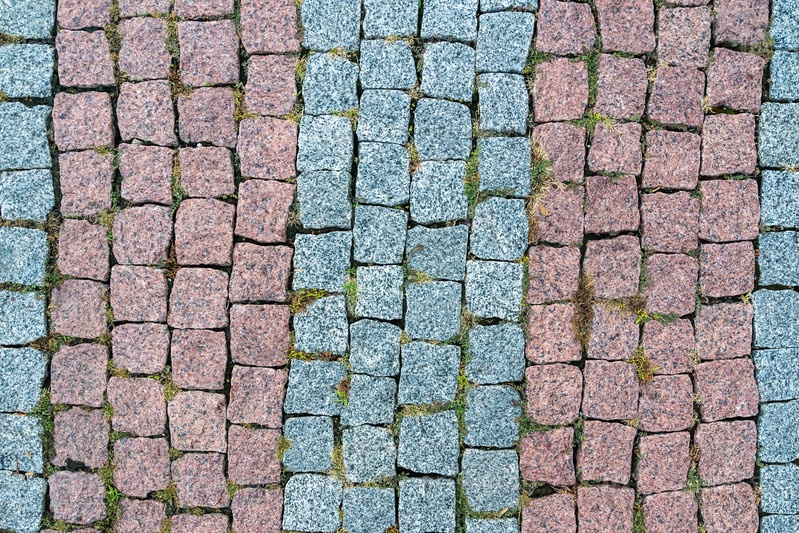 Красочная мощеная дорожка с зеленым мхом в спокойной обстановке на открытом воздухе