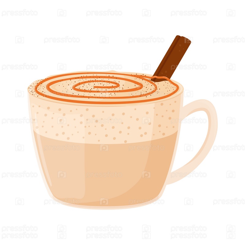 Карамельный латте с корицей в стеклянной чашке. Уютный напиток