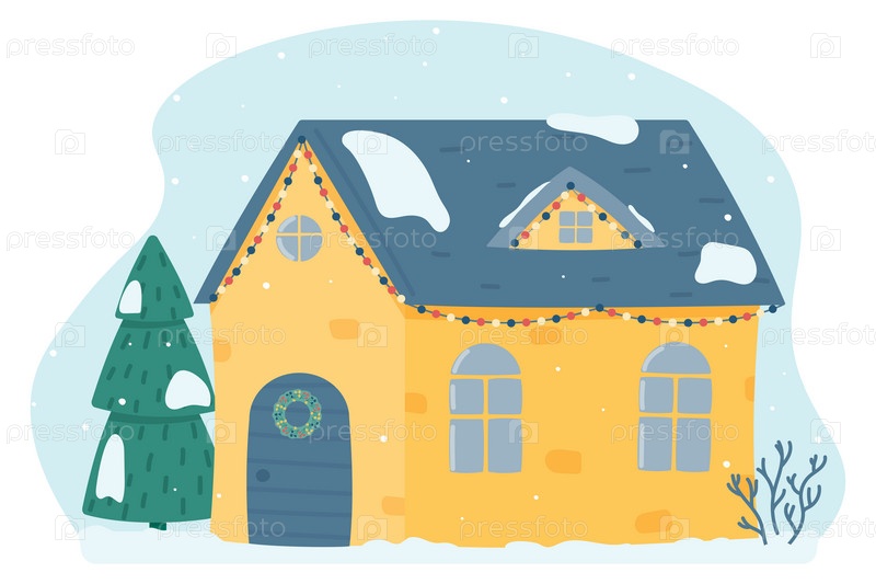 Милый рождественский и зимний домик. Украшенный дом