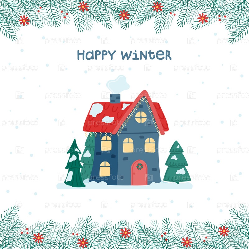 Счастливой зимы. Милое Рождество и зимний дом. Украшенный дом
