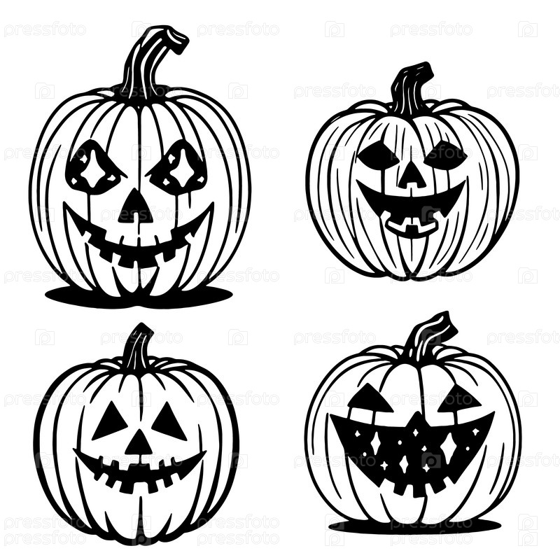 Жуткие иконки и наклейки с тыквами на тему Хэллоуина