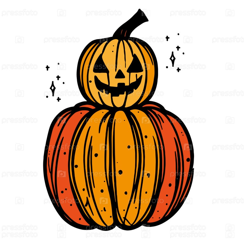 Жуткие иконки и наклейки с тыквами на тему Хэллоуина