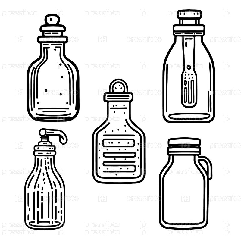 Маленькие красивые алхимические бутылочки для магических зелий. Значки для черно-белых бутылочек с электронной жидкостью или магического кристалла или артефакта