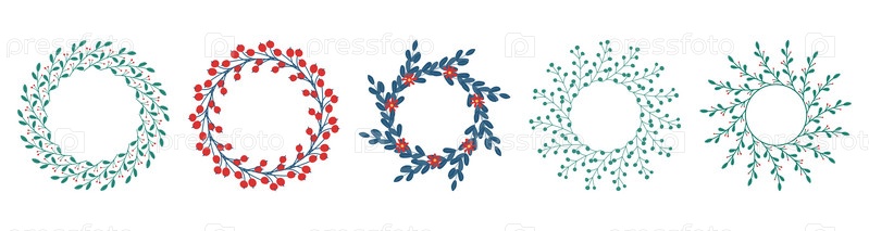 Комплект круглых рамок из стилизованных веток и цветов