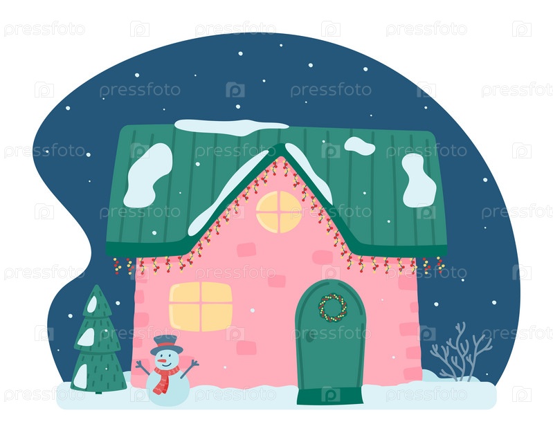Милый рождественский и зимний домик. Детский украшенный домик
