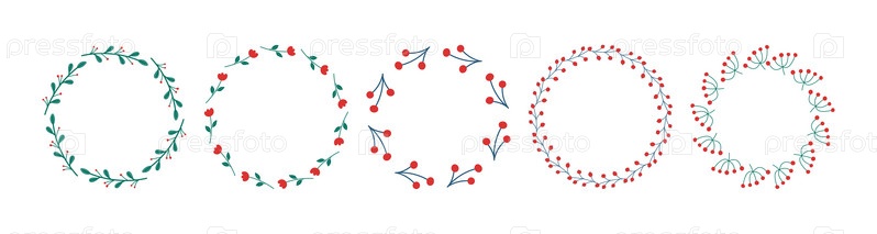Набор венков на белом фоне. Набор круглых рамок из стилизованных веток и цветов