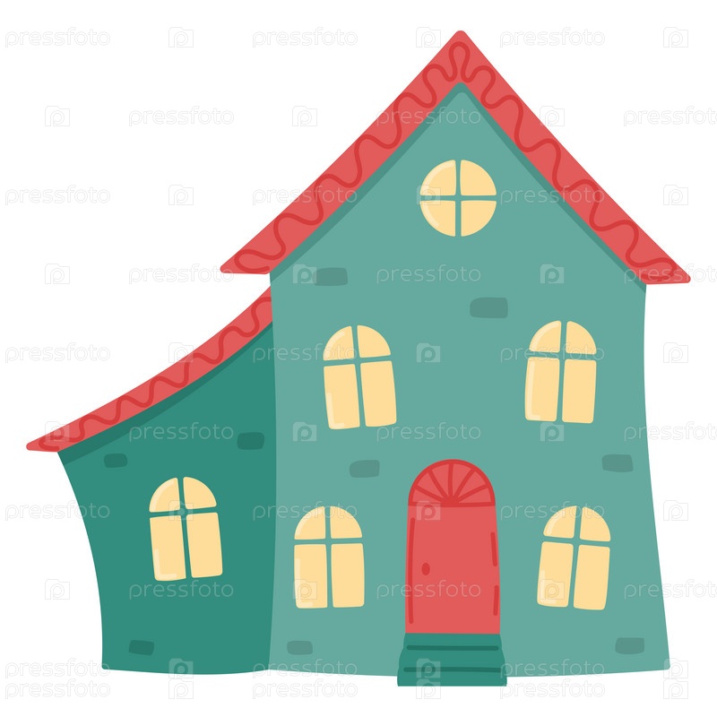 Зеленый дом с красной крышей. Вид спереди