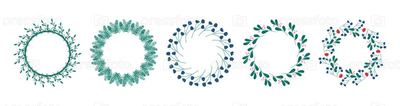 Комплект круглых рамок из стилизованных веток и цветов