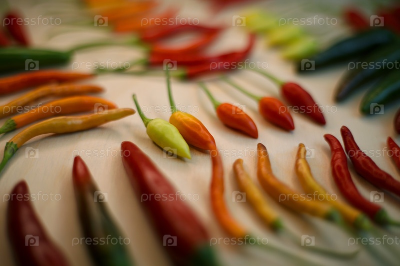 Разные виды острого перца разных цветов от зеленого до фиолетового