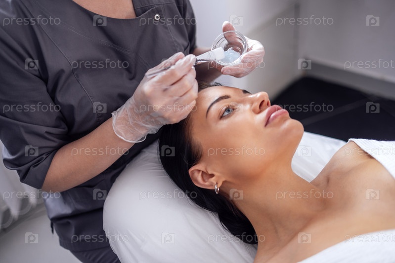 Красивая брюнетка делает косметическую процедуру