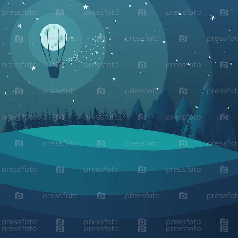 Девочка-волшебница летает на воздушном шаре на Луне и рассыпает звезды по небу