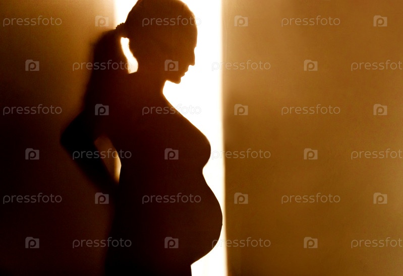 Силуэт беременной женщины в солнечном свете. Красивая тень от женщины, ожидающей ребенка