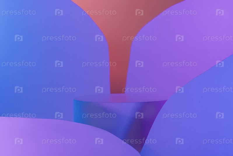 Сцена для косметических продуктов с мягким голубым и розовым светом. Цветные абстрактные формы