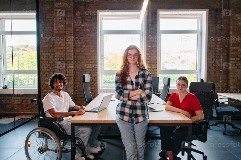 Разнообразная группа профессионалов в сфере бизнеса сотрудничает в современном коворкинг-центре для стартапов, используя сочетание бумажных документов и технологических инструментов, таких как мобильные телефоны и компьютеры