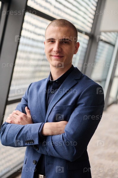 Портрет молодого бизнесмена со скрещенными руками на его фабрике