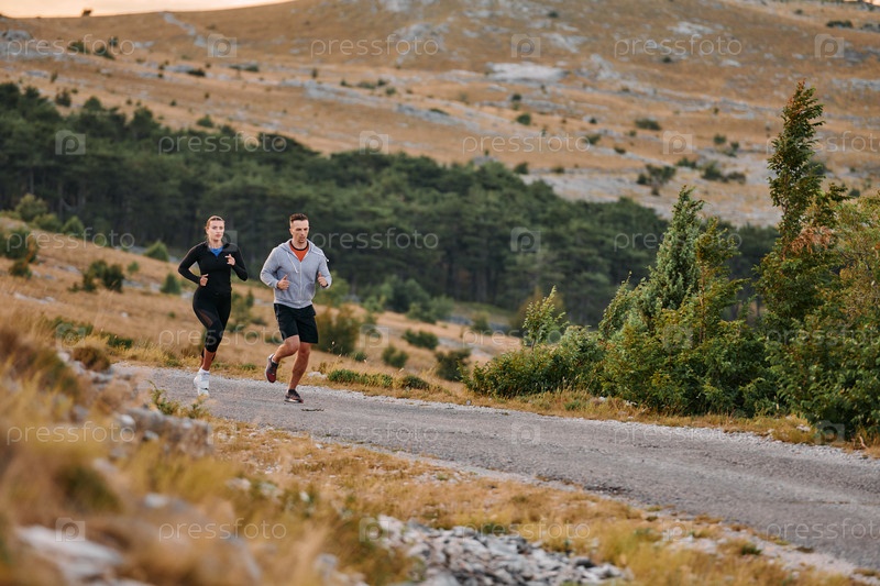 Бодрящая утренняя пробежка для пары в горах