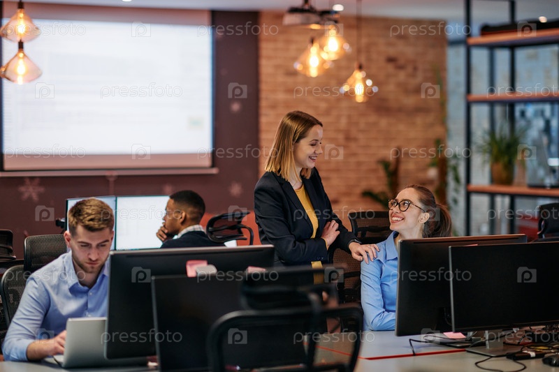 Стратегическая бизнес-встреча: группа профессионалов, работающих в офисе с использованием компьютеров