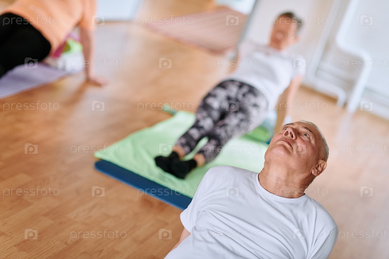 Пожилой мужчина выполняет упражнения для шеи и спины, способствующие здоровому старению и благополучию