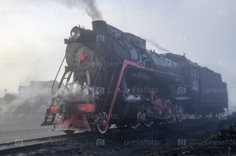 Советский паровоз серии «Л» туманным октябрьским утром на подъездных путях станции Сортавала