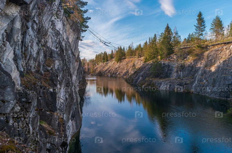 Вид на озеро в Мраморном каньоне в горном парке Рускеала. Карелия, Россия