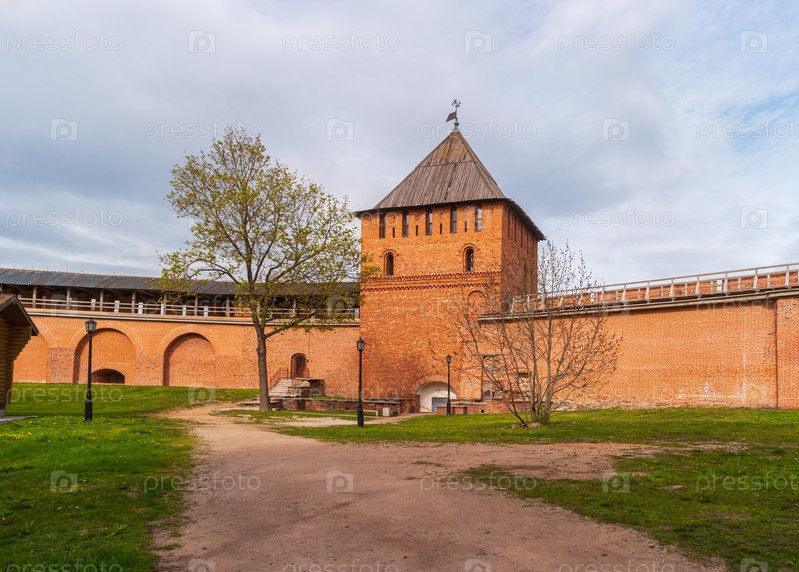 Великий Новгород, Россия. Вид на Владимирскую башню Новгородского кремля. Территория Детинца