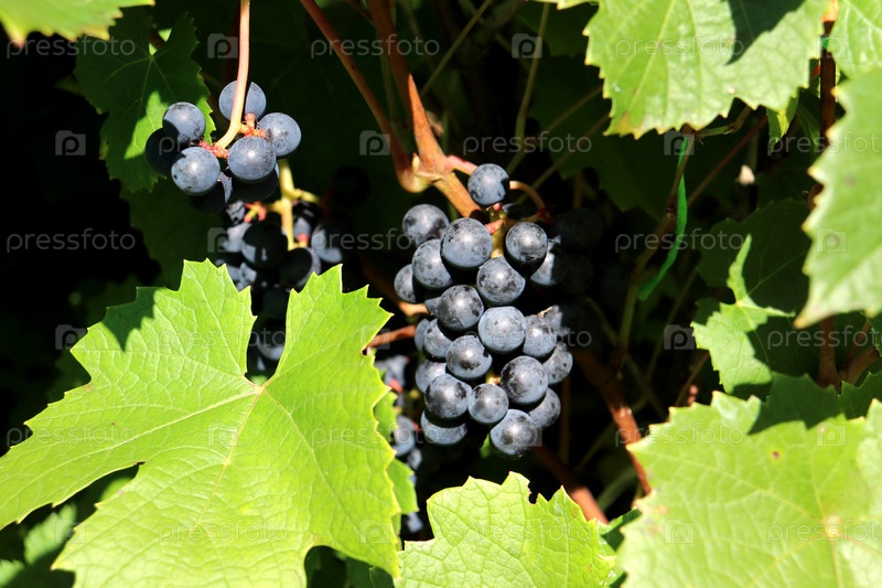 Спелые грозди синего винограда на лозе в саду в солнечный день