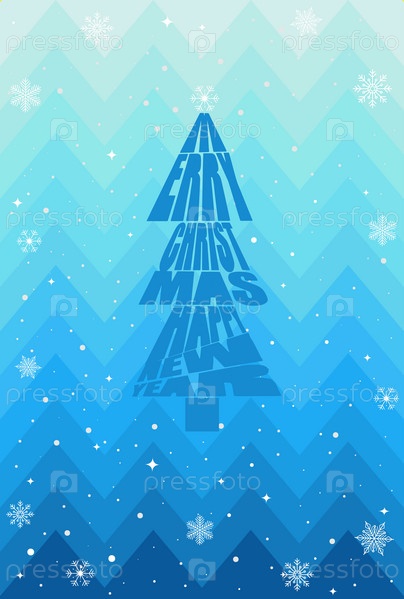 Надпись Merry Christmas and Happy New Year в виде елки Рождественский фон с рукописной типографией и снежинками Вектор