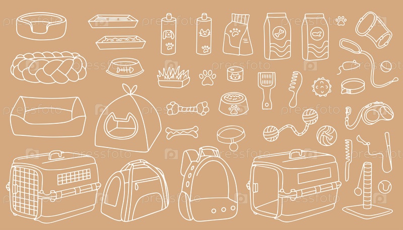 Набор иконок для зоомагазина, средства по уходу за домашними животными, аксессуары для животных, ошейники, миски, поводки, игрушки, еда