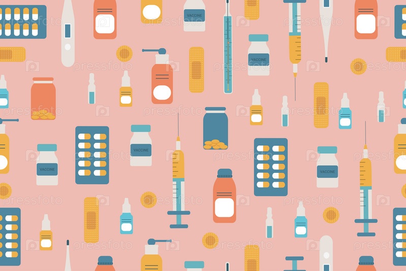 Медицинский набор, бесшовный узор, вектор. Векторная иллюстрация здравоохранения
