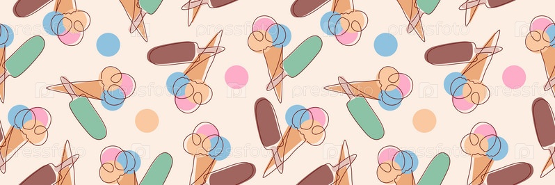 Бесшовный узор мороженого. Фон иллюстрации линии мороженого. Векторная иллюстрация