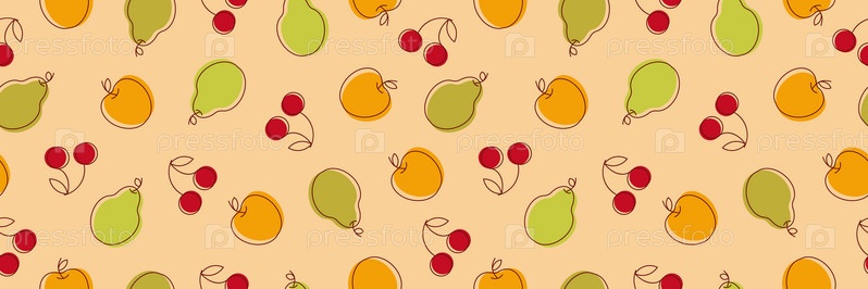 Фруктовый узор. Бесшовный узор с вишней, яблоками, грушами. Красочный узор. Вектор