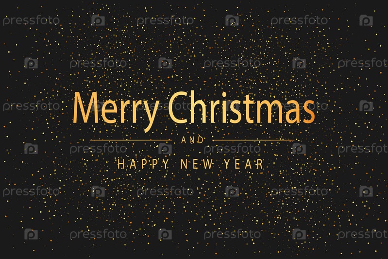 Рождественский фон. Волшебная сияющая золотая пыль. Маленькие, блестящие частицы пыли и звезды. Фантастический эффект мерцания. Векторная иллюстрация
