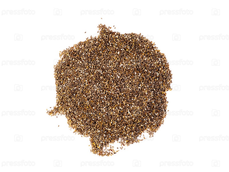 Семена чиа, изолированные на белом фоне, вид сверху