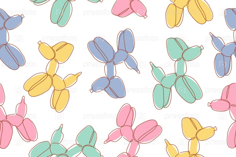 Классический воздушный шар собака. Векторный бесшовный узор милого мультяшного животного-пузыря в цвете. Элемент дизайна для логотипа, открытки, футболки, приглашения, ткани, обложки, аксессуаров. Вектор