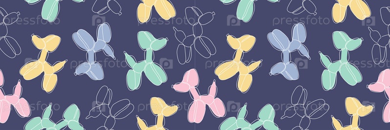 Классический воздушный шар собака. Векторный бесшовный узор милого мультяшного животного-пузыря в цвете. Элемент дизайна для логотипа, открытки, футболки, приглашения, ткани, обложки, аксессуаров. Вектор