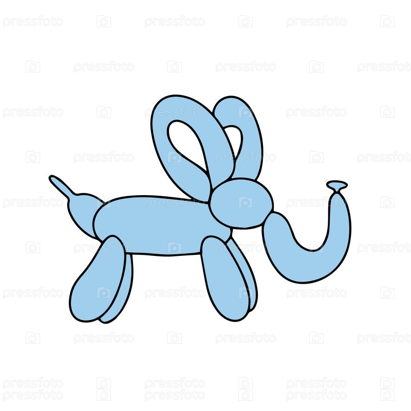Надувной слон из скрученных воздушных шаров. Элемент дизайна для поздравительной открытки, пригласительного билета, печати, флаера, баннера. Вектор