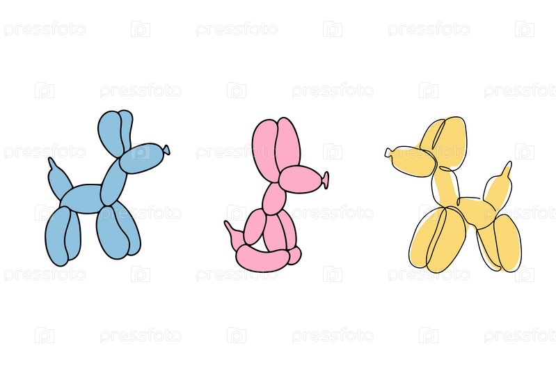 Надувные собаки из скрученных воздушных шаров. Элемент дизайна для поздравительной открытки, приглашения, печати, флаера, баннера. Вектор