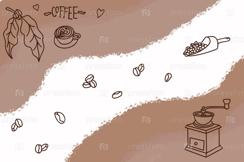 Баннер для меню и рецептов. Набор рисованной темы кафе. Каракули для кофе, пекарня для меню кафе, кондитерская. Векторная иллюстрация