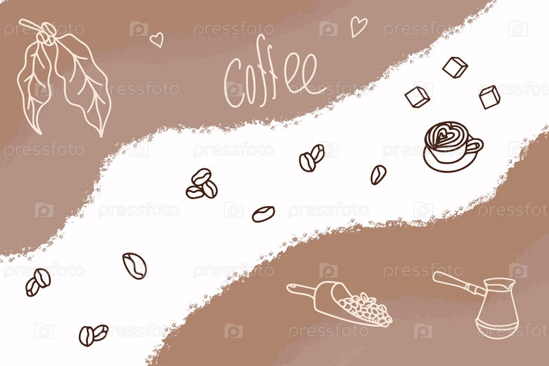 Баннер для меню и рецептов. Набор рисованной темы кафе. Каракули для кофе, пекарня для меню кафе, кондитерская. Векторная иллюстрация