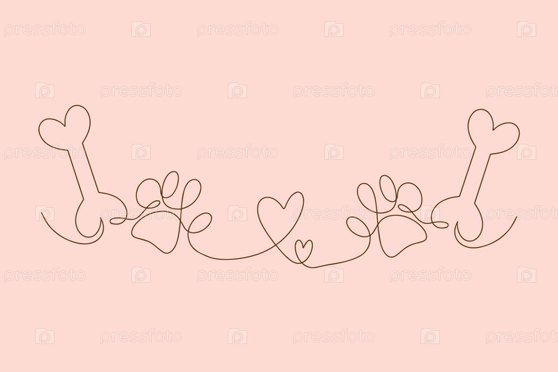 Сердце, лапа животного, кость в одной линии. Концепция любви. Векторная иллюстрация
