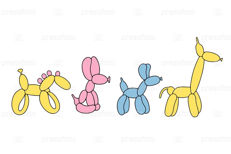 Бесшовный узор из разноцветных шаров. Красочный рисунок надувных игрушек из скрученных шаров. Элемент дизайна для упаковки, поздравительной открытки, пригласительного билета, печати, флаера, баннера. Вектор