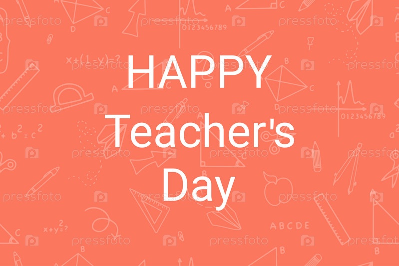 Векторная открытка с Днем учителя с надписями. Дизайн поздравительной открытки, макета, логотипа, марки или баннера ко Дню учителя