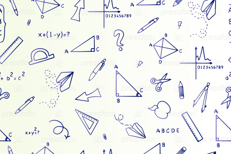 Возвращение в школу карандашные рисунки бесшовный шаблон со школьными принадлежностями, уравнениями и геометрическими фигурами в стиле doodle