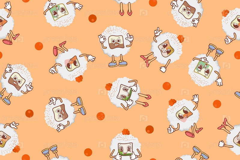 Бесшовный узор суши-роллов. Векторный дизайн азиатской кухни