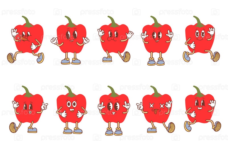 Набор перца с кавайными глазами. Вектор в мультяшном стиле