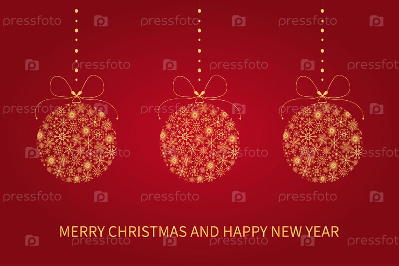 Праздничная рождественская открытка с елочными шарами из снежинок. Поздравительная открытка с Рождеством и Новым годом