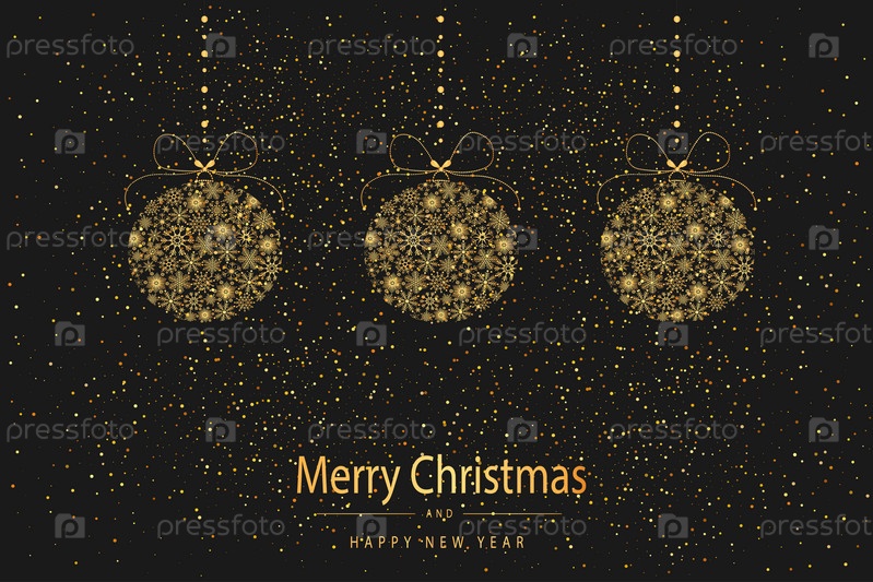 Праздничная рождественская открытка с елочными шарами из снежинок. Поздравительная открытка с Рождеством и Новым годом